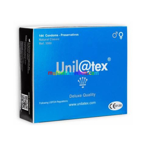 UNILATEX NATURAL ÓVSZER - 144 db, normál méret ANYAG: Latex. LEÍRÁS: Dobozban 144 latex óvszer tárolóval. Az Unilatex óvszereket a legmodernebb európai technológiával gyártják, a legmagasabb minőségű gumiból, a nemzetközi szabvány tanúsítása alapjá
