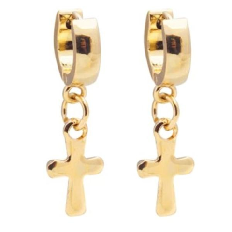 Modern arany színű keresztes fülbevaló rozsdamentes acélból. Tökéletes választás férfiaknak és nőknek mindennapi viseletre vagy különleges alkalmakra