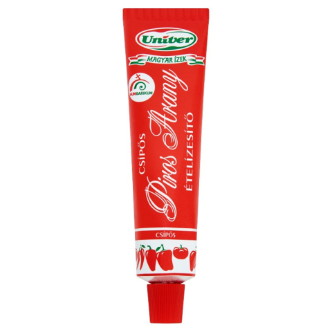 Univer csípős Piros Arany kiváló minőségű paprikából készült ételízesítő, mely a nyers paprika ízét és színét biztosítja a fogyasztó számára. 1963 óta töretlenül népszerű és egyedülálló termék a hazai piacon. A fűszerpaprikát és pritaminpaprikát tartalmaz