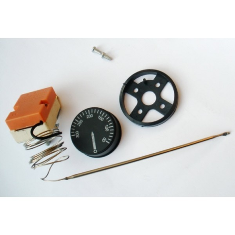 Univerzális sütőtermosztát 50° - 300°. Kapilláris hossz: 170cm Rögzítő csavar távolság 2,8cm Tengelyátmérő 6mm, lapolásnál 5mm. Tengely hossz 1,8 cm Érzékelő cső hossz ~13cm Fekete hozzá tartozó tekerőgombbal, és a gomb alátéttel, csavarral.