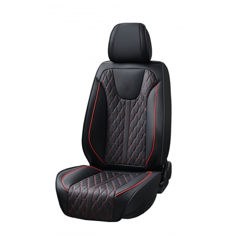 1 kép Univerzális autósüléshuzat-garnitúra, fekete ecobőr, piros varrással, elöl-hátul