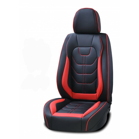 1 kép Univerzális autósüléshuzat-készlet, fekete és piros ecobőr, elöl és hátul