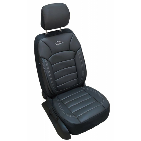 1 kép Univerzális autósüléshuzat-szett, fekete ecobőr és fehér varrás, elöl-hátul