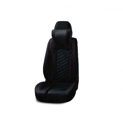 1 kép Univerzális autósüléshuzat-szett, fekete ecobőr, piros varrással, Deluxe Design elöl-hátul