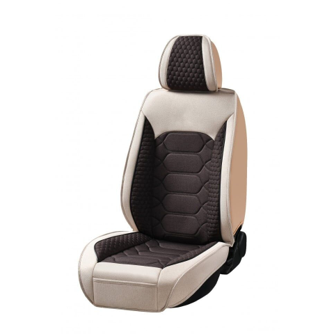 1 kép Univerzális autósüléshuzat-szett, krémszínű és barna szövetből, elöl-hátul