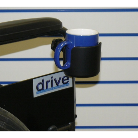 - univerzális pohártartó - kerekesszékre szerelhető - egyben a bevágásnak köszönhetően járóbot tartó is - pillangóvéges csavarral szerszám nélkül felfogatható (lásd videó) - tartó átmérője: 9,7 cm - bottartó bevágás szélessége: 2 cm - csomag tartalma. dob