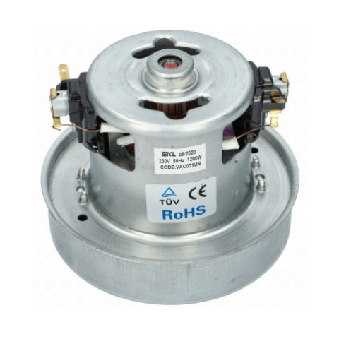 Univerzális porszívómotor SKL VAC021UN Magasság: 115mm, Ø130mm. Szélesség a szénkefetartónál: 118mm 1200W, 230V, 50Hz. Ezeket helyettesíti: VCM-02, 11ME66, YDC01 Electrolux: 2192400030,