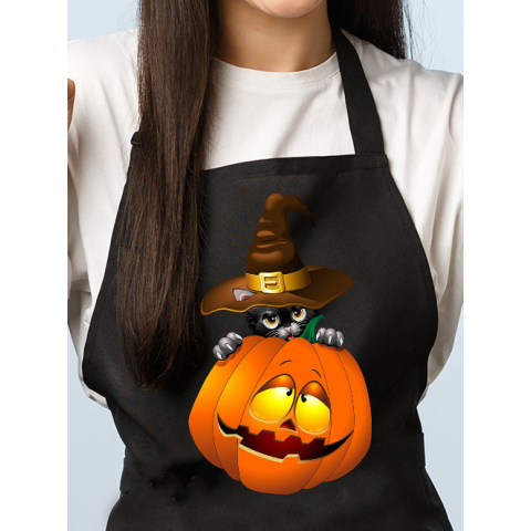 Teljes Ünnepi kötény - Halloweeni tök és macska termékleírás