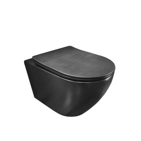 UNO perem nélküli fali WC lecsapódásgátlós, gyorsrögzítős slim WC-ülőkével, matt fekete színben.