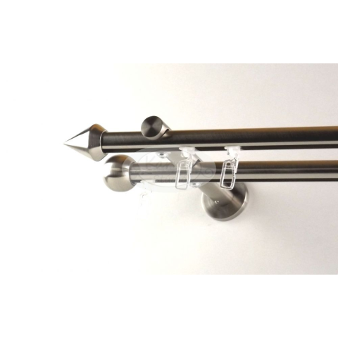 Az UPPSALA belsősínes 2 rudas fém karnis szett tartalma: 2 db belsősínes fém karnisrúd a kiválasztott hosszúságban 2 db Uppsala (Madrid) típusú nemesfém színű fém karnis végzáró 2 db gömb formájú végzáró 2 db falra szerelhető fém konzol a felszereléshez