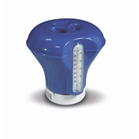 1 kép Úszó vegyszer adagoló medencéhez, hőmérővel maxi sötétkék/fehér