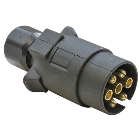 Magyar szabványú 7 csatlakozású utánfutó dugó, mely forrasztás nélkül, csavarozással szerelhető. Bekötése műszaki ismereteket igényel.