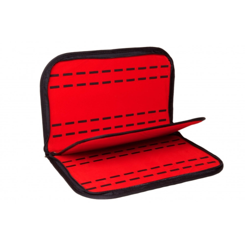 Mesterséges bőr utazó óratartó mappa 20, vagy akár 40 órának is! Belseje piros színű szövet. A két oldal között elválasztó lappal! Mérete csukott állapotban: 40x28cm Mérete nyitott állapotban: 40x56cm