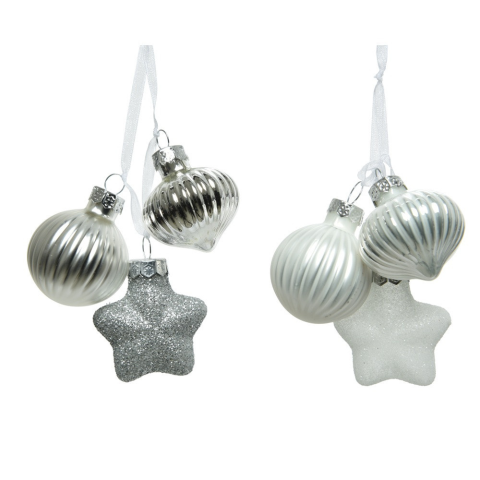 1 kép Üveg dísz fehér-ezüst mix 4cm 3db-os