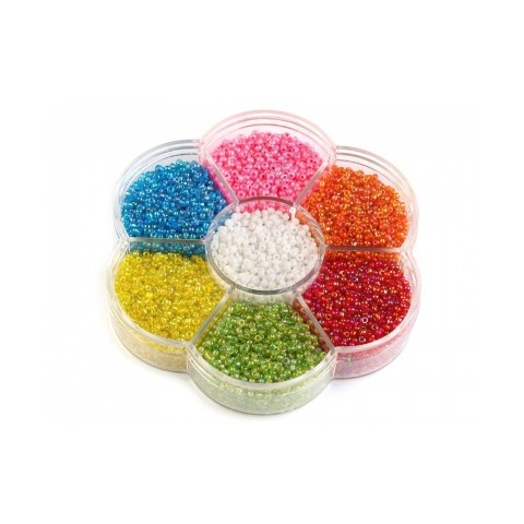 Üveg kásagyöngyök dobozban - 7 szín gyöngy