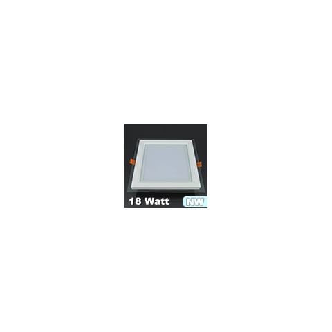 Üveg keretes, gipszkartonba süllyeszthető LED panel, négyzet (18W) - természetes fehér