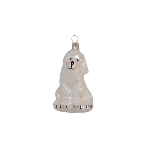 Üveg kutya fehér karácsonyfadísz 1 kép