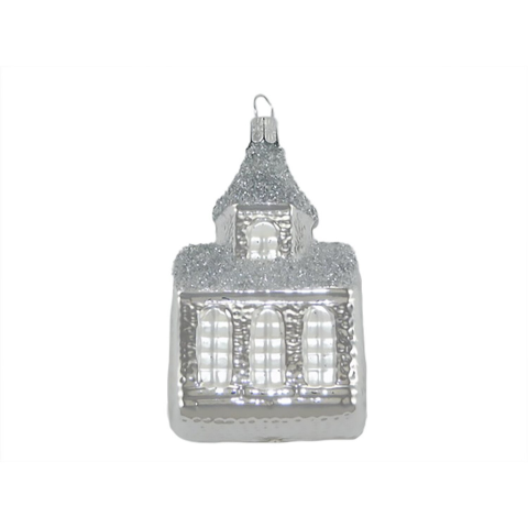 Üveg templom ezüst karácsonyfadísz árgrafikon