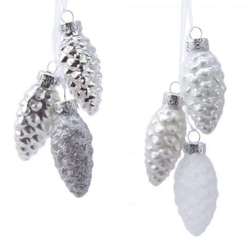 Üveg toboz fehér-ezüst 6cm 3db-os dekorációs kellék 1 kép