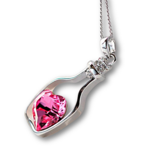 Egyedi üvegbe zárt szív nyaklánc kristályos díszítéssel, tökéletes szerelem nyaklánc különleges alkalmakra