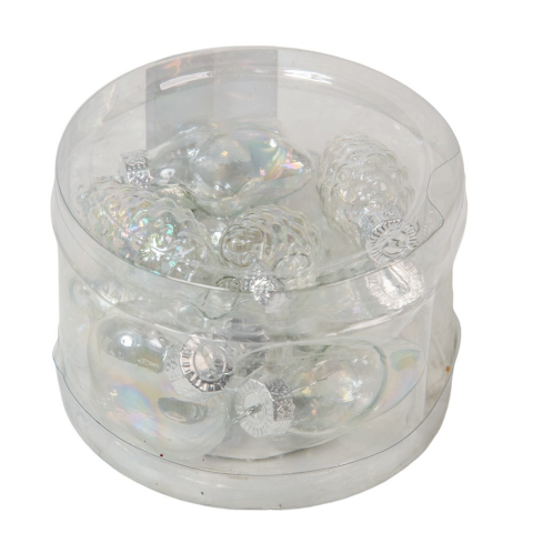 Üvegdísz akasztós irizidáló 4-7cm 12db-os