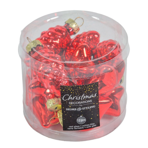 Üvegdísz akasztós piros 4-7cm 12db-os karácsonyfadísz árgrafikon