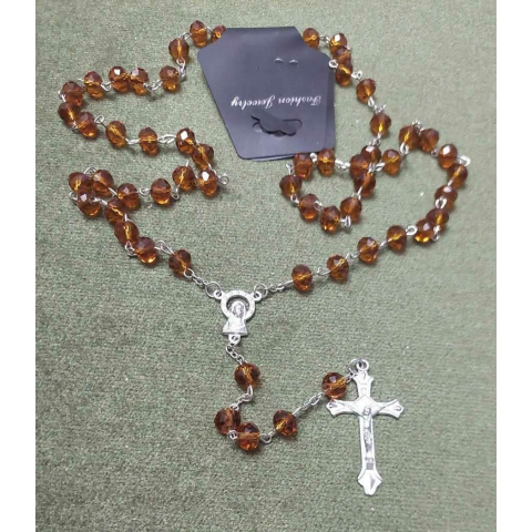 ÜVEGKRISTÁLY gyöngy rózsafüzér, imalánc nyaklánc BARNA