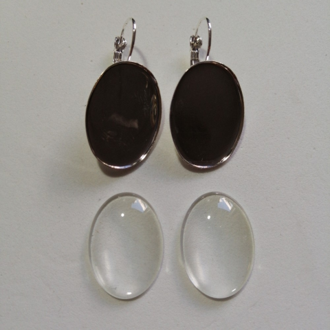 1 kép Üveglencsés fém ékszer alap - fülbevaló, ovális, ezüst színű