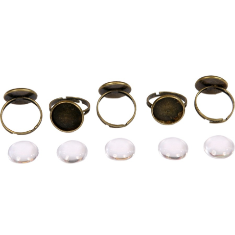 1 kép Üveglencsés fém gyűrűalap lencsével kör alakú, 14 mm - bronz