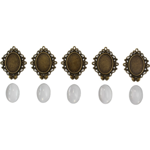 1 kép Üveglencsés fém medál lencsével ovális, 18 mm x 25mm - bronz