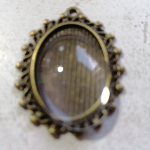 1 kép Üveglencsés fém medál lencsével ovális, 18 x 25mm - bronz színű