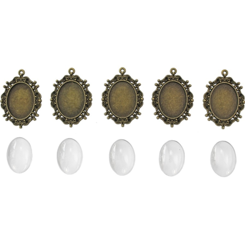 1 kép    Üveglencsés fém medál lencsével ovális, 18x25mm - bronz
