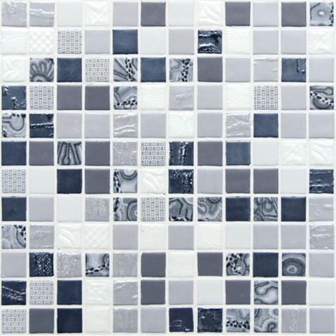 Fagyálló. Üvegmozaik szürke színben mérete 31,6x31,6 cm fényes felülettel. Négyzet alakú alapelem mérete 2,5x2,5 cm