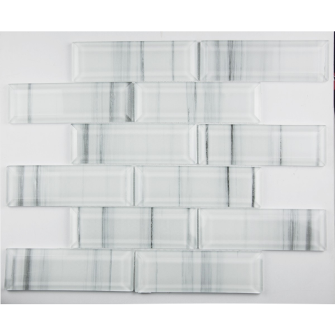 Üvegmozaik fehér színben mérete 30x30 cm vastagsága 8 mm márványutánzatban fényes felülettel. Téglalap alakú alapelem mérete 4,8x14,8 cm