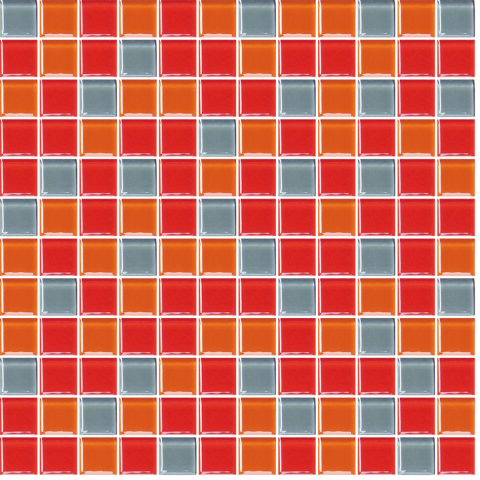 Üvegmozaik színkeverék mérete 30,5x30,5 cm vastagsága 4 mm fényes felülettel. Négyzet alakú alapelem mérete 2,5x2,5 cm