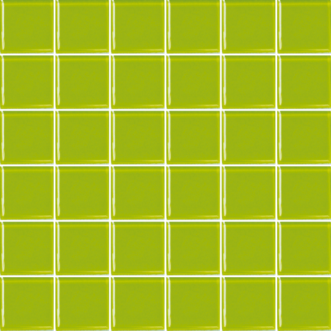 Üvegmozaik zöld színben mérete 31x31 cm vastagsága 4 mm fényes felülettel. Négyzet alakú alapelem mérete 5x5 cm