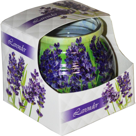 Üvegpoharas illatmécses levendula illattal, 70 mm x 75 mm méretű, kellemes illatot és meghitt hangulatot varázsol otthonába.