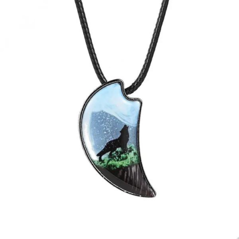Üvöltő farkasos nyaklánc farkasfog alakú medállal és állítható bőrszíjjal. Vad és misztikus megjelenés, tökéletes kiegészítő mindennapi viselethez
