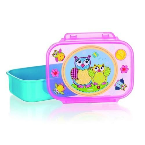 OWLS Blue uzsonnás doboz 17,5 x 12 x 6 cm, bagoly motívummal díszített műanyag doboz. Az egészséges iskolai vagy kirándulás alkalmával történő uzsonnázást szolgálja.