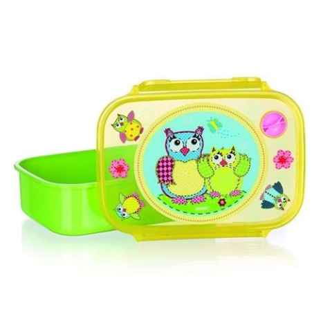 OWLS Green uzsonnás doboz 17,5 x 12 x 6 cm, bagoly motívummal díszített műanyag doboz. Az egészséges iskolai vagy kirándulás alkalmával történő uzsonnázást szolgálja.