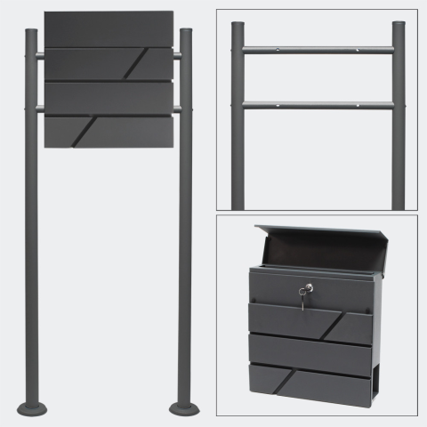 Bevonatos acélból készült levélszekrény időtlenül elegáns megjelenéssel. A postafiók nagyméretű postanyílással rendelkezik, zárható és két kulccsal rendelkezik. A szerelési anyagokat is a szállítási terjedelem tartalmazza. Alul van egy újságtartó is. Áll