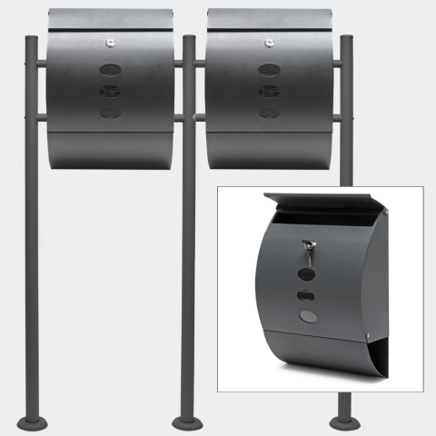 Bevonatos acélból készült dizájner postaláda időtlenül elegáns megjelenéssel. A postaláda nagyméretű levélnyílással rendelkezik, zárható és két kulcs valamint rögzítési anyag is jár hozzá. Alul van egy újságtartó is. Állvány két postaláda telepítéséhez, i