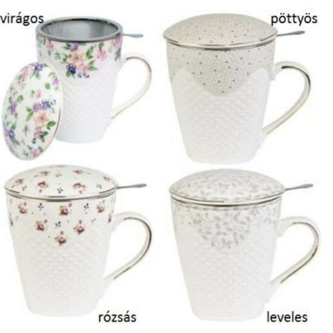V.B.13019 Valentina porcelán teásbögre tetővel,fémszűrővel,430ml bögrék, csészék árgrafikon