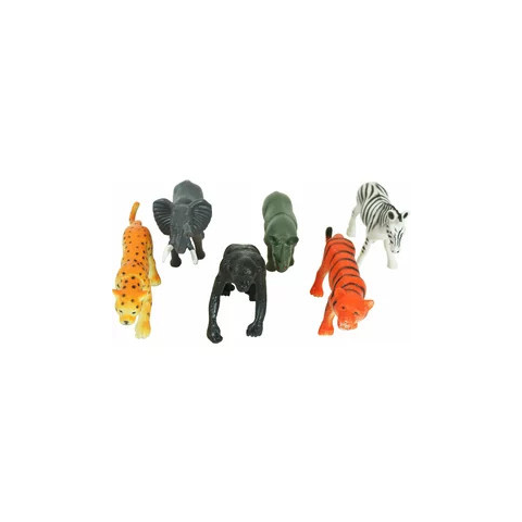 Rendezd be a saját szavannádat vadállatokkal! A Vadállat 6 darabos készlet egy leopárd, orrszarvú, zebra, tigris, oroszlán és elefánt műanyag állatfiguráját tartalmazza. Az állatok szép festéssel készültek, együtt használhatók bármilyen állatos játékokkal is. A Vadállat 6 darabos készlet állatainak mérete: 11-13 cm.