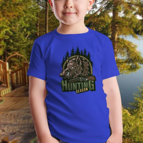 1 kép Vadász gyerek póló - Vaddisznó mintával - Királykék 116