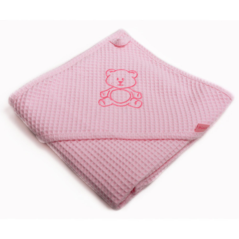 Vaganza fürdõlepedõ Waffle 70X70cm rózsaszín hímzett maci Puha, lágy tapintású és kiváló nedvszívó waffle fürdõlepedõ Fürdõlepedõnk extra dekorációja a kapucnin található hímzés, melyekkel még vidámabb perceket okozhatunk gyermekünknek esti fürdés ide