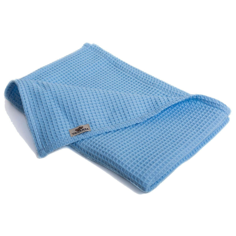 Vaganza takaró pamut Waffle 100x140cm kék Waffle pamut babatakaró Pamut, légáteresztõ takaró. Mérete: 100 x 140 cm Anyaga: 100% Pamut Mosógépben 30°C-on mosható Nem fehéríthetõ Magyar termék