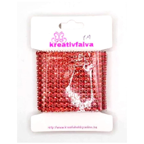 Piros színű strasszkő-szalag, amit ollóval könnyedén méretre vághatsz.