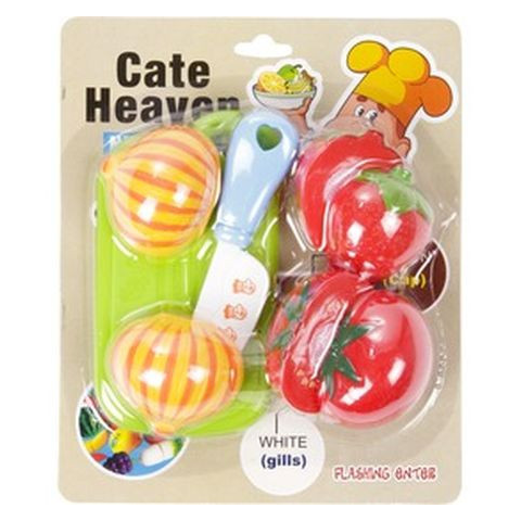 Vágható gyümölcs és zöldség 8 darabos készlet Tanuld meg a gyümölcsök és zöldségek szeletelését! A Műanyag vágható gyümölcsök és zöldségek élelmiszer készletben egy paradicsomot, egy hagymát és epret találsz, amiket a vágódeszkán tudsz feldarabolni a