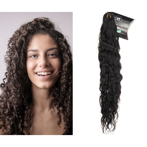 Gépi tresszelt, osztályozott, göndörített, feldolgozott póthaj. Kellemesen puha, selymes tapintású, tömör, hidratált, kézbeomló, extra minőségű, fényes póthaj. 60-70 cm 98 gramm vékony-közép szálú, tömör, lágy haj, póthaj. erősen hullámos-göndör (gön